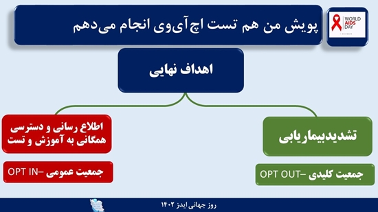 این مقام مسئول تصریح کرد: بنابراین شعار روز جهانی  سال 1402 با عنوان ارتقاء خدمات تشخیص اچ‌آی‌وی با مشارکت اجتماعی /پایان ایدز با پوشش همگانی خدمات پیشگیری، تشخیص، مراقبت و درمان انتخاب شده است.