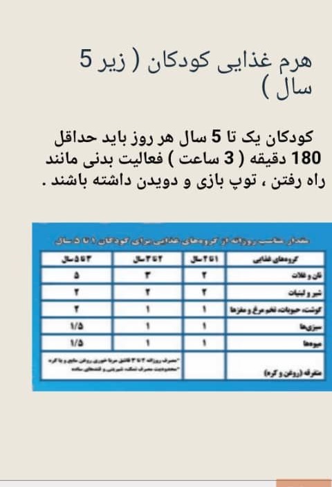 ارائه هرم غذایی کودکان زیر ۵ سال