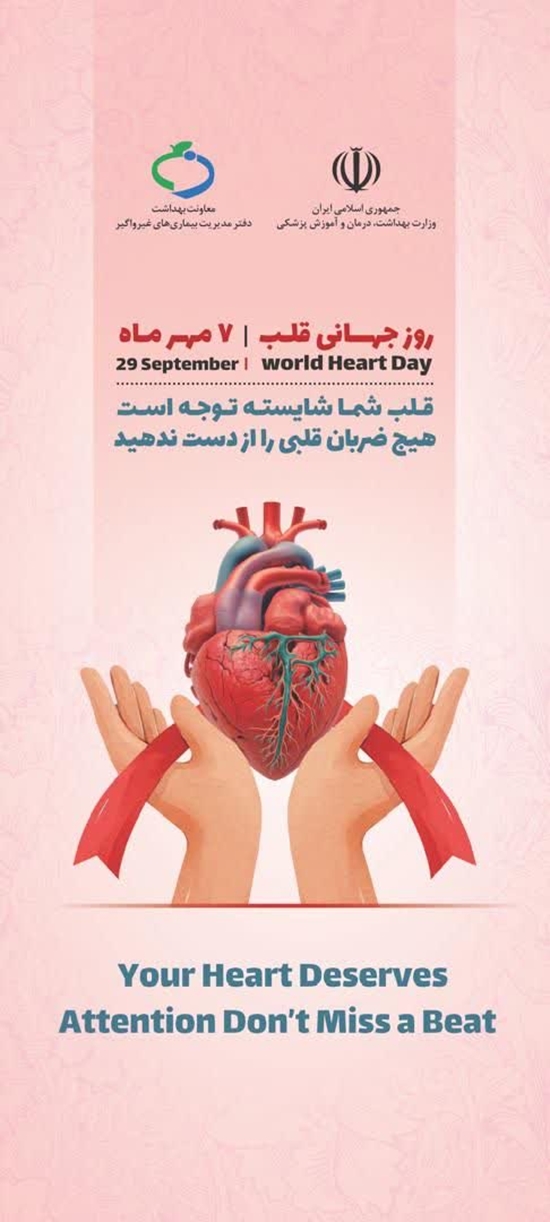مصطفی جیبا، کارشناس مسئول واحد مبارزه با بیماریهای غیرواگیر، با اشاره به اهمیت بیماریهای قلبی و عروقی گفت: همانطور که اطلاع دارید، بیماریهای قلبی و عروقی همچنان اولین علت مرگ و میر در دنیا و کشور محسوب میشوند، بهطوری که سالانه حدود ۲۰.۵ میلیون نفر در سراسر جهان به علت این بیماریها جان خود را از دست میدهند. این رقم معادل ۳۱ درصد کل مرگهای جهان و نیمی از مرگهای ناشی از بیماریهای غیرواگیر است. بیشتر این موارد به شکل حملات قلبی و سکتههای مغزی بروز پیدا میکند.وی افزود: عوامل خطری مانند مصرف دخانیات، الکل، رژیم غذایی نامناسب و کمتحرکی، زمینهساز بروز اضافهوزن، چاقی، افزایش قند و چربی خون و همچنین فشار خون بالا هستند که نهایتاً به بیماریهای قلبی و عروقی منجر میشوند.جیبا بر اهمیت برگزاری روز جهانی قلب تأکید کرد و گفت: این روز نقش بسیار مهمی در اطلاعرسانی، ارتقای آگاهی عمومی و همچنین جلب حمایت سیاستگذاران برای پیشگیری و کنترل این بیماریها دارد. امسال این مناسبت در روز دوشنبه ۷ مهرماه (۲۹ سپتامبر) برگزار میشود و شعار آن هیچ ضربان قلبی را از دست ندهیم با پیام اصلی قلب تو شایسته توجه است تعیین شده است.این مقام مسئول در پایان خاطرنشان کرد: هدف روز جهانی قلب این است که همه افراد بدانند با انتخاب شیوه زندگی سالم و ایجاد چند تغییر ساده میتوانند سلامت قلب خود را حفظ کنند.