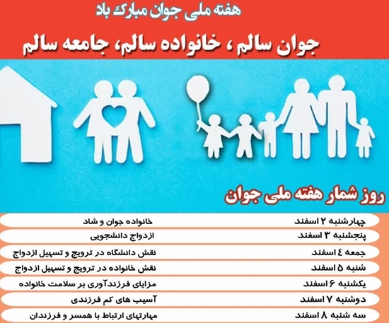 به گزارش روابط عمومی مرکز بهداشت غرب اهواز، حدیث غلامپور مسئول سلامت جوانان و نوجوانان و مدارس مرکز بهداشت غرب اهواز با اشاره به ﻋﻨﻮﺍﻥ ﺭﻭﺯ ﻣﻠﯽ  و هفته ﺟﻮﺍﻥ ۲ ﻟﻐﺎﯾﺖ۸ ﺍﺳﻔﻨﺪﻣﺎﻩ با شعار ": ﺟﻮﺍﻥ ﺳﺎﻟﻢ، ﺧﺎﻧﻮﺍﺩﻩ ﺳﺎﻟﻢ، ﺟﺎﻣﻌﻪ ﺳﺎﻟﻢ"، و اینکه شعار سه روز از این هفته در خصوص ازدواج می باشد، گفت: ازدواج آغاز ایجاد خانواده و تعهد مادام‌العمر در زندگی است. همچنین ضمن خدمت به همسر و فرزندان خود فرصتی برای رشد و  از خودگذشتگی را فراهم می‌کند. ازدواج فراتر از یک پیوند فیزیکی یعنی پیوند عاطفی و معنوی است.